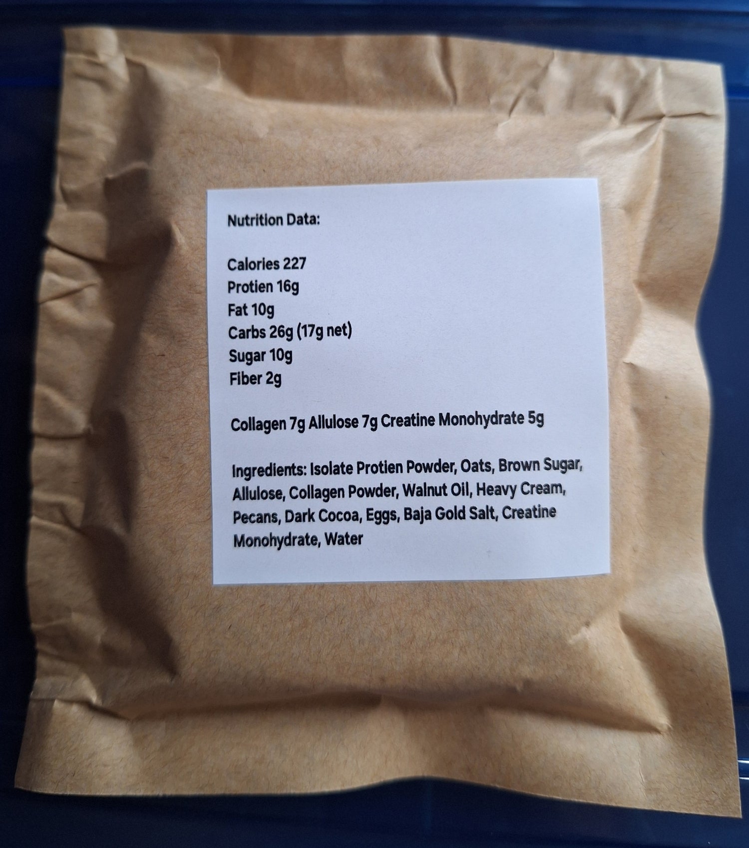 Made in the U.S.A. using top quality ingredients, each brownie contains 227 Calories, 16 grams of protein, 10 grams of fat (high in omega-3's) and only 17 net carbs, plus each brownie also contains 5 grams of Creatine Monohydrate, 7 grams of Collagen Peptides and 7 grams of Allulose, all while tasting like a little debbie or cosmic brownie!